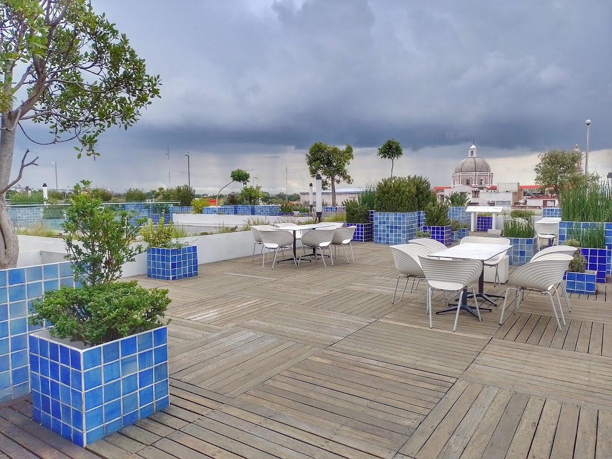 Cafe Museo Amparo sits atop the Museo Amparo in the heart of Puebla’s Centro Histórico, offering visitors a relaxed space to pause after exploring one of the city’s leading cultural attractions. As a cafe, it balances indoor comfort with the appeal of an open-air terrace, shaded by umbrellas and boasting views that stretch across Puebla’s iconic rooftops and cathedral spires.
